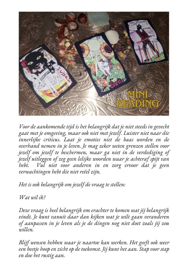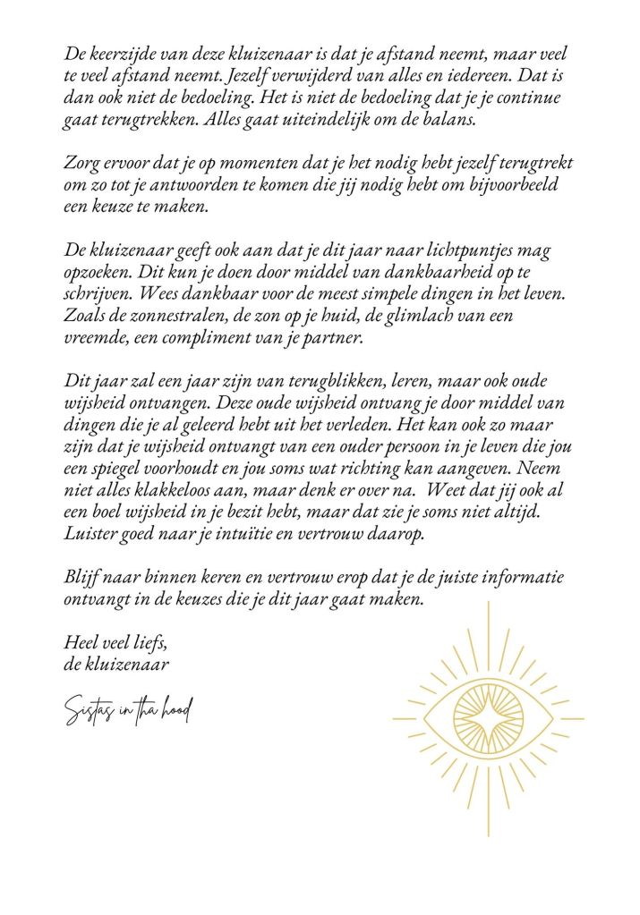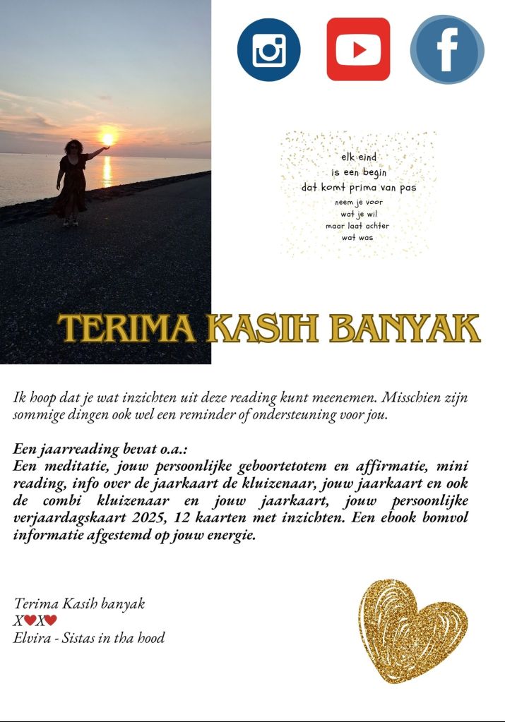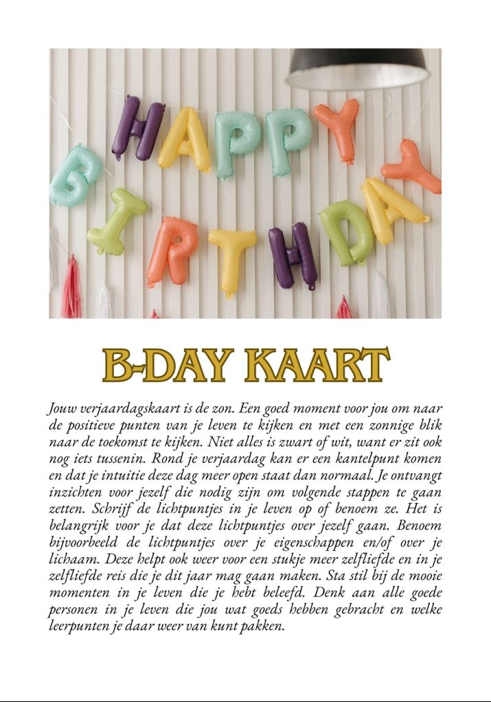 Deze reading bevat informatie voor het gehele jaar die je aanvraagt. Dit kan aan het begin van het jaar, maar kun je ook op je verjaardag aanvragen. Deze ontvang je in de vorm van een ebook zodat je een mooi naslagwerk hebt wat je kunt lezen.