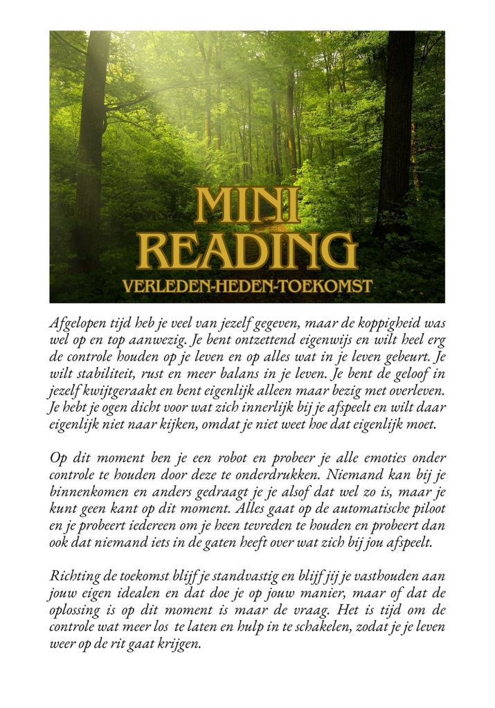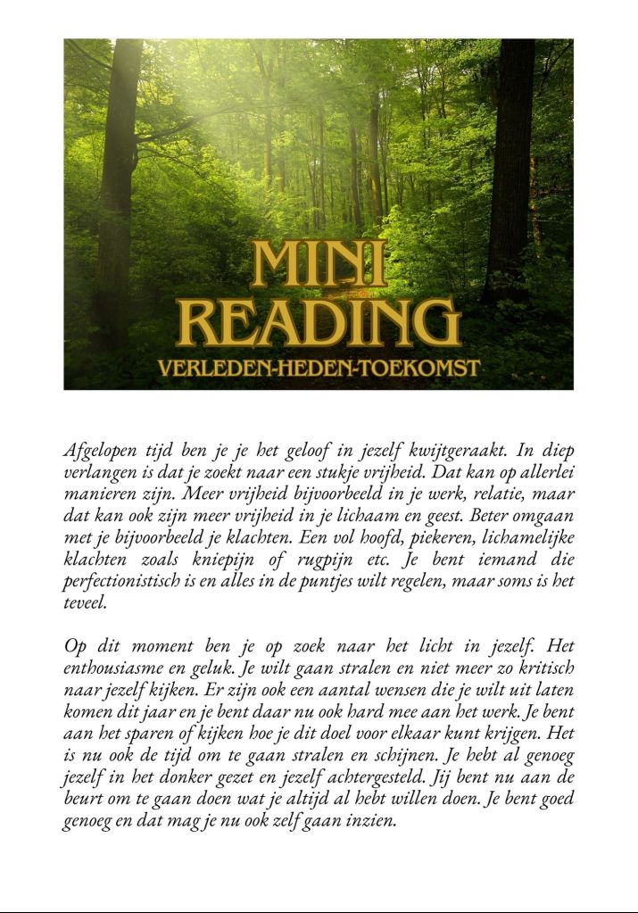 Hieronder een gedeelte van een voorbeeldreading. De reading is niet compleet. Deze is met toestemming van de persoon geplaatst.